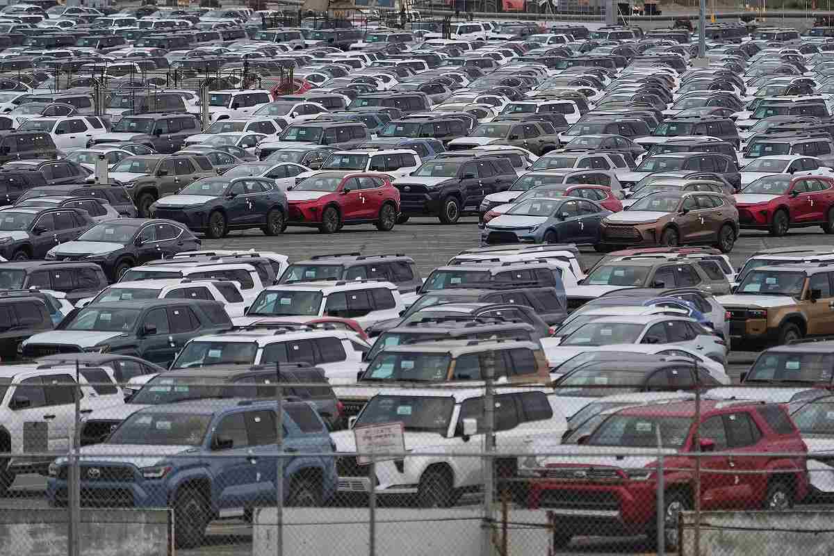 New Toyota vehicles are parked at Toyota Logistics Service Inc., the company’s most significant imported vehicle processing facility in North America, at the Port of Long Beach in Long Beach, Calif., on March 26.