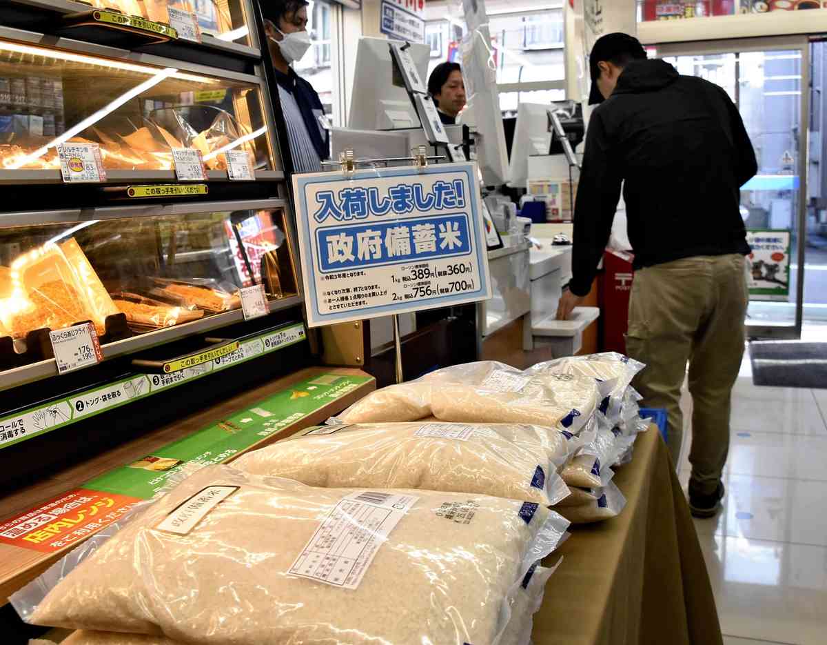 FamilyMart Co. and Lawson, Inc. began selling the rice for ¥360 per kilogram, excluding tax, at some of their stores in Tokyo and Osaka Prefecture. Both plan to expand the sales nationwide.