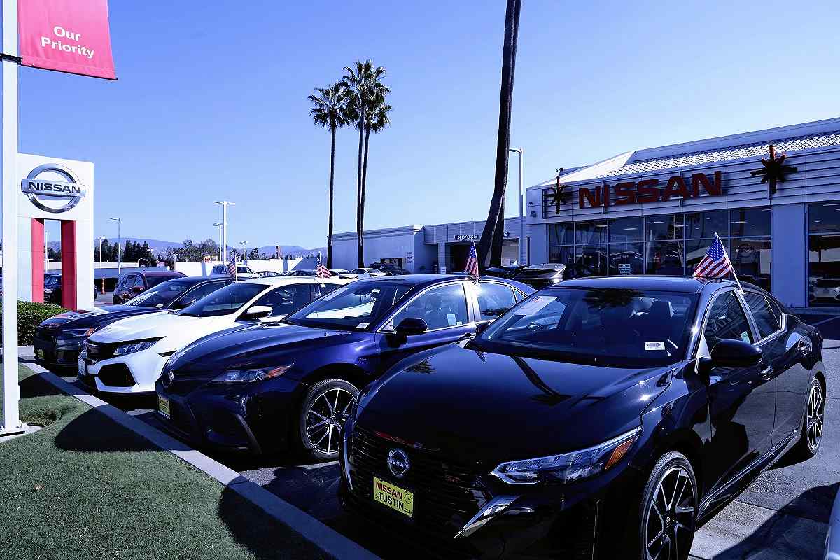 Cars are lined up at a Nissan Motor Co. dealership near Los Angeles in January.