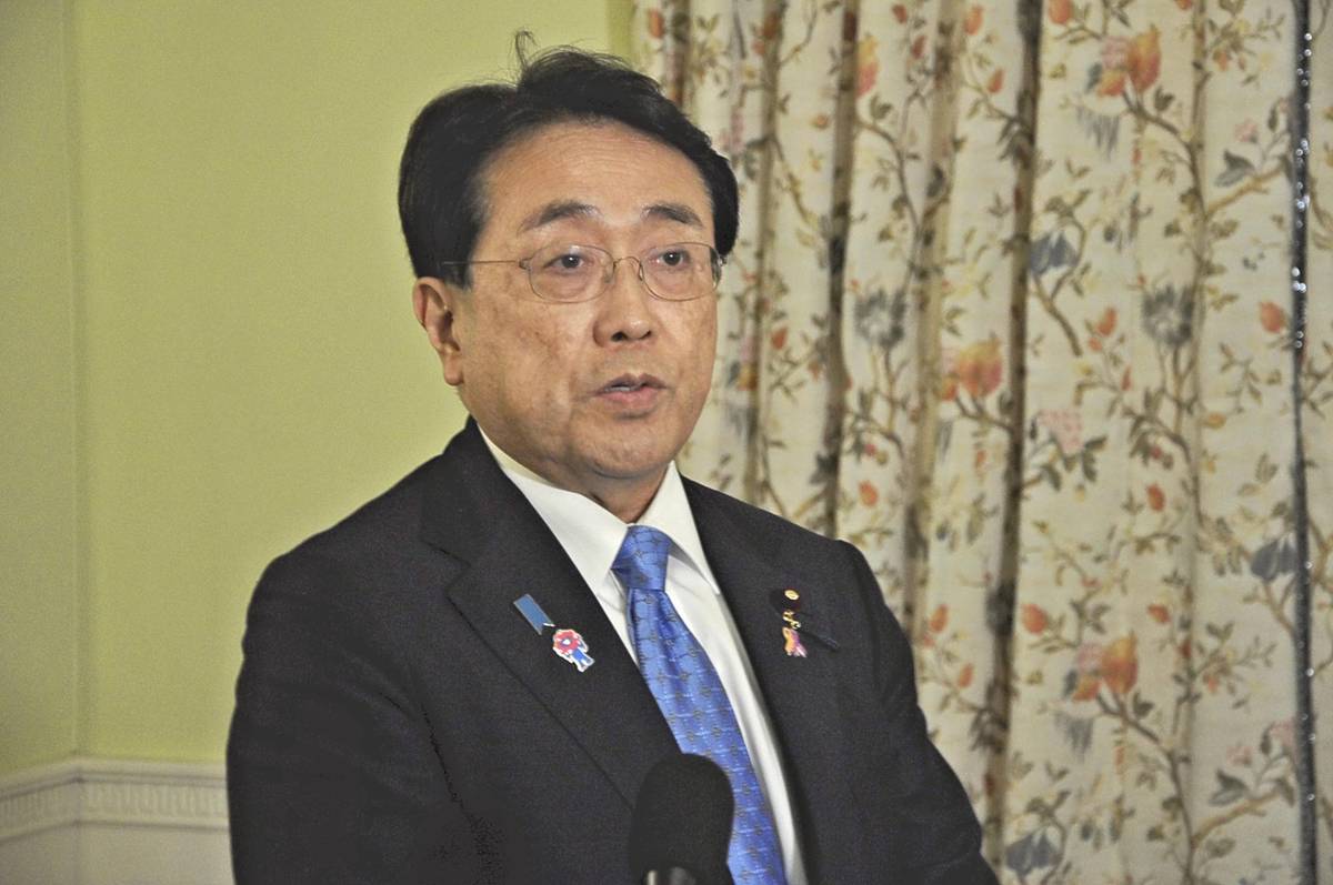 Economic revitalization minister Ryosei Akazawa answers questions from reporters after meeting U.S. government officials in Washington on Thursday.