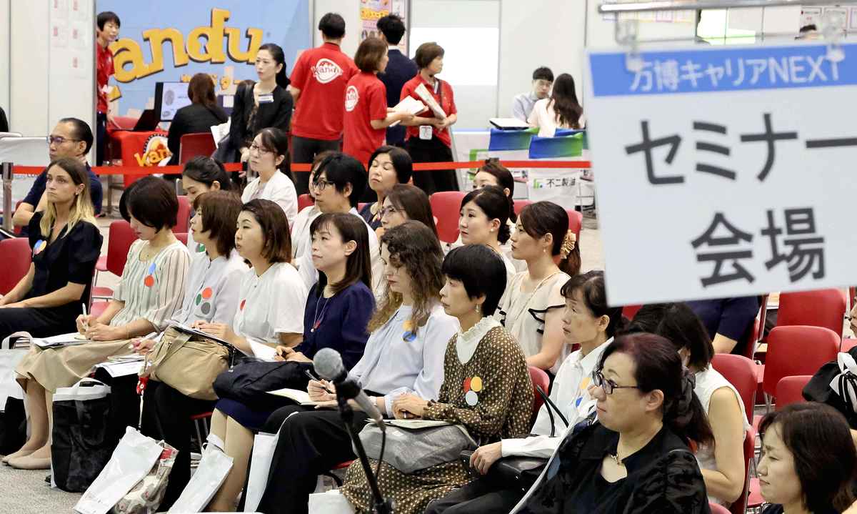 A joint corporate job fair targeting staff working at the Expo venue was held in Osaka on Sept. 14 and 15, introducing employment opportunities after the Expo’s closure. A total of 107 companies participated, with industries ranging from hotels to manufacturers. Amid ongoing labor shortages, “Expo talent” has become the subject of fierce competition.