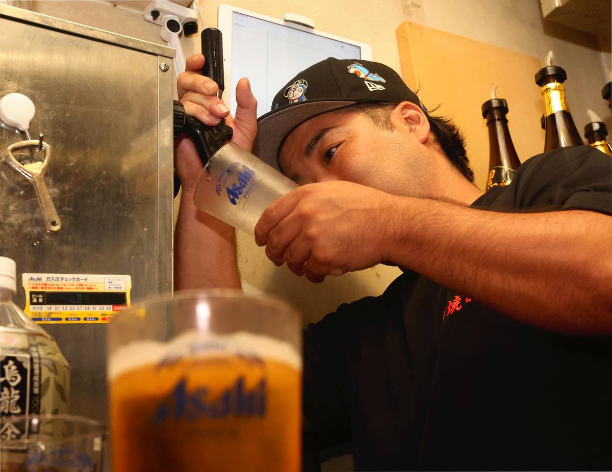 Supplies of beer brewed by Asahi remain low in many places, including at this establishment in Minato Ward, Tokyo, on Oct. 10.