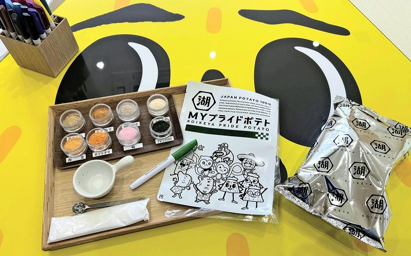 At the Koikeya Gogo! Factory, visitors can try making potato chips in their own style by mixing flavors, with eight options to choose from, including some tastes unique to Gifu Prefecture, like keichan — a dish made with chicken and vegetables cooked with a special sauce — and Hoba miso paste. They can also design packaging for their new snacks.