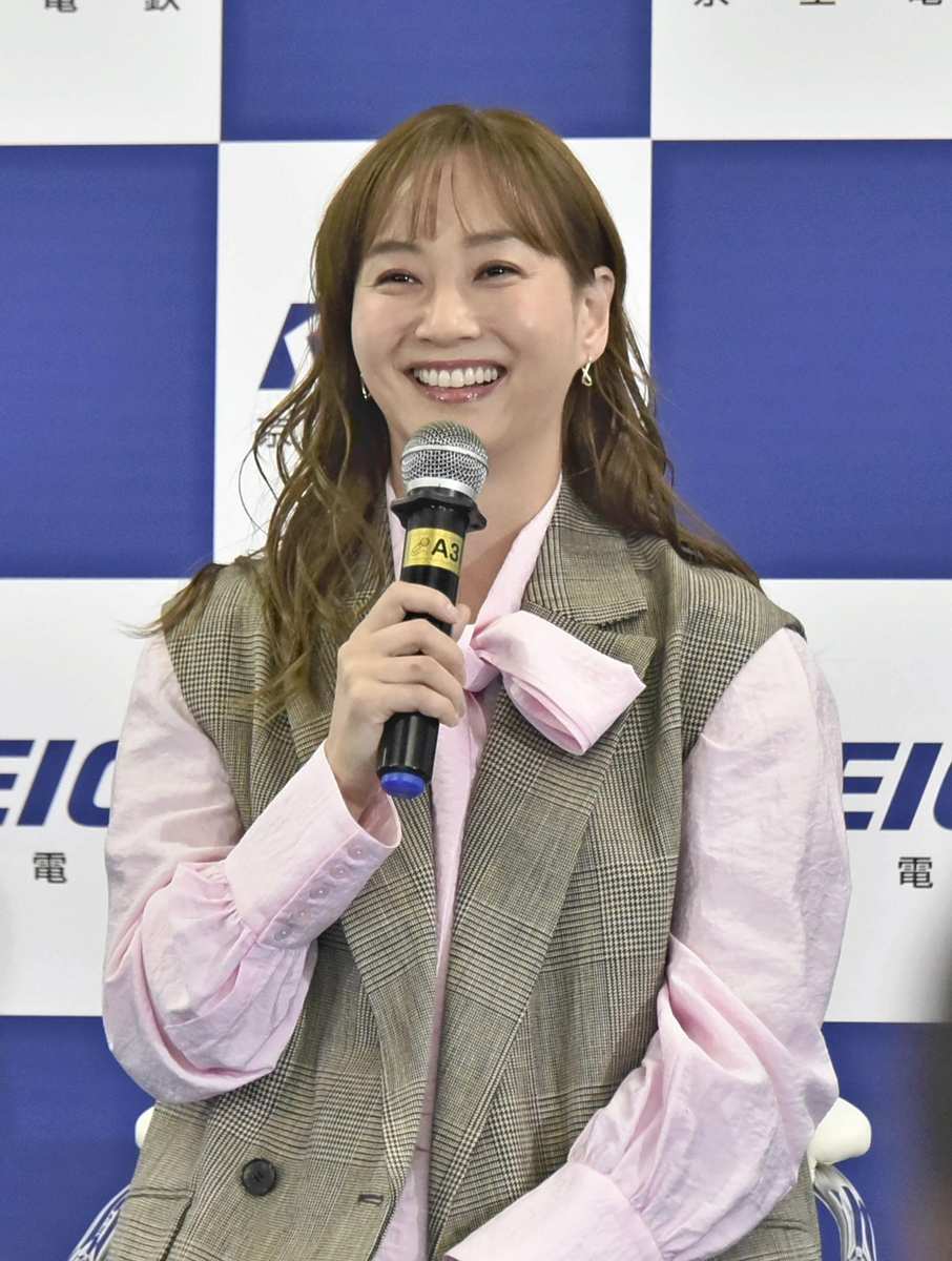 In late October, Keio Corp., the operator of Keio and other lines, held a ceremony to unveil a new model of train car with large open spaces. Miki Fujimoto, a 44-year-old TV personality and the mother of three children aged 5 to 13, took to the stage as a guest speaker and shared her difficult experiences in the past.