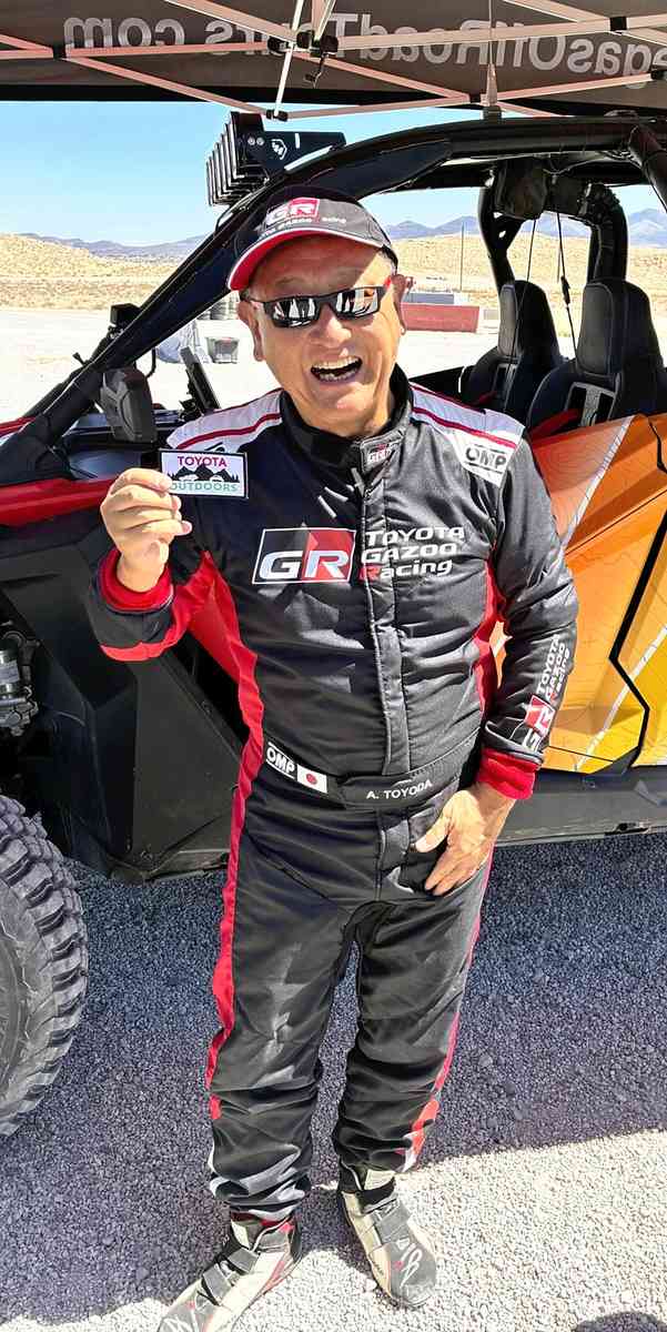 Akio Toyoda, chairman of Toyota Motor Corp., poses after driving an off-road buggy in a Las Vegas suburb on Sept. 9, the day before the company’s U.S. National Dealer Meeting.