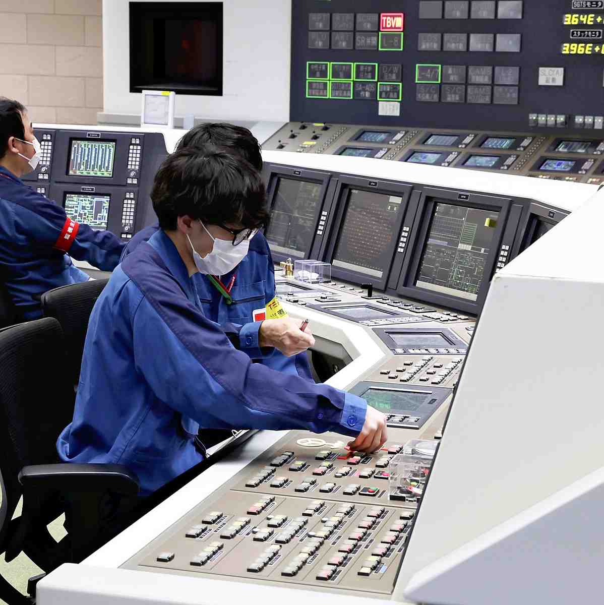 An operator works in the central control room of the No. 6 reactor at Kashiwazaki-Kariwa nuclear power station in Niigata Prefecture on Monday.