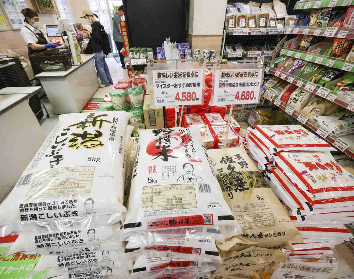 Expensive rice is seen at a supermarket in Kawasaki in July.