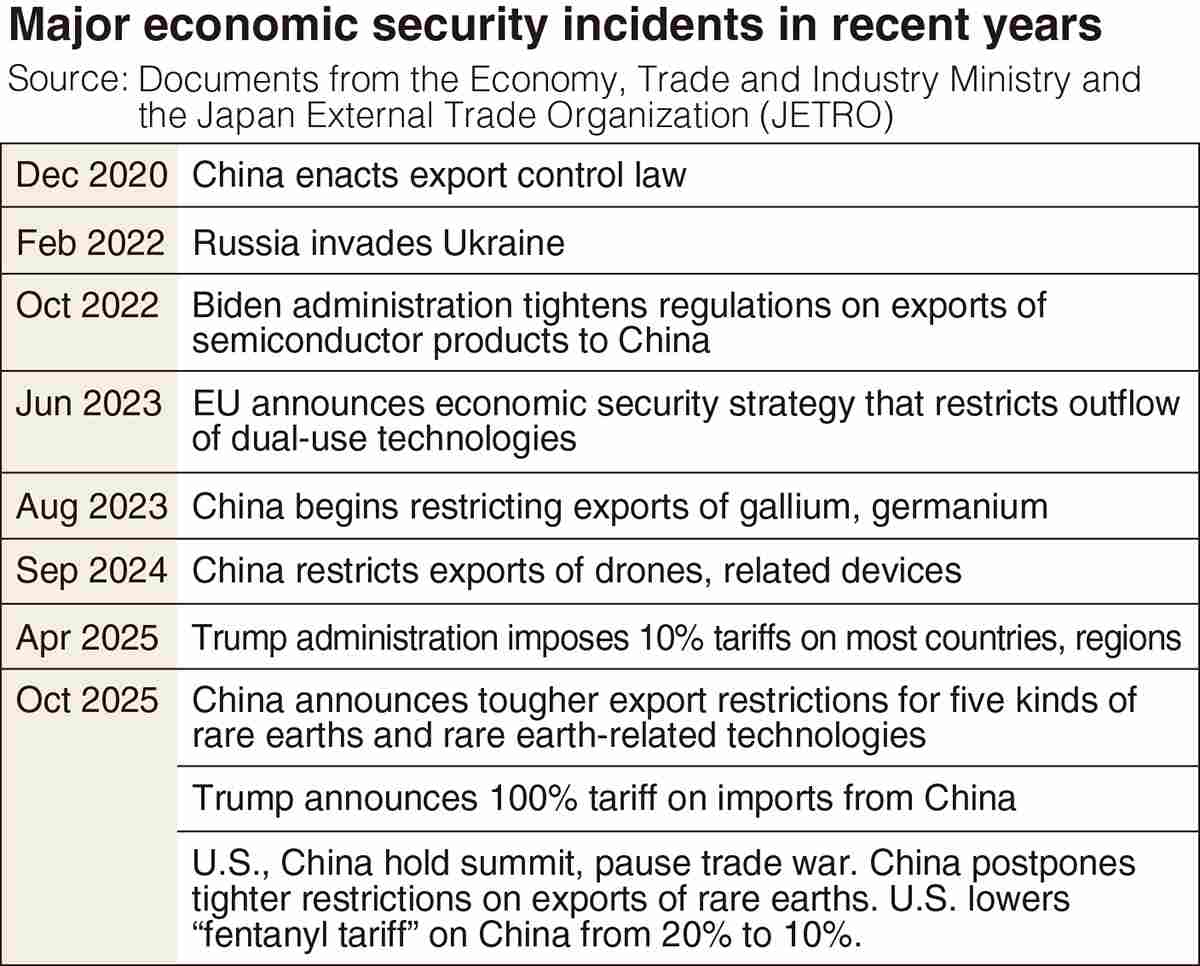 Regarding economic security, the Chinese government announced on Oct. 9 more extensive export restrictions and related measures concerning rare earths, instilling a sudden sense of crisis in the United States, European countries and Japan.