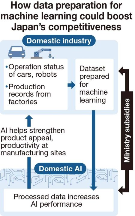 Massive amounts of training data need to be pre-processed to improve the accuracy of artificial intelligence. The Economy, Trade and Industry Ministry has focused particularly on the data possessed by Japan’s strong manufacturing sector, believing that enhancing the performance of domestically developed AI will strengthen the nation’s product competitiveness and productivity.