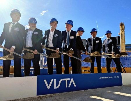 Mitsubishi Estate Co.’s ground-breaking ceremony of a project to build office buildings is conducted in London.