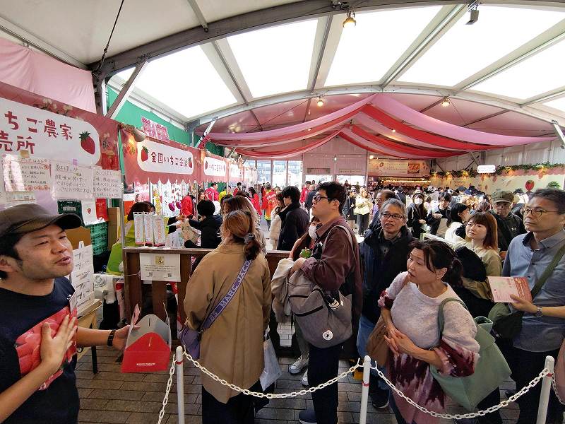 As part of the Yokohama Strawberry Festival, which started Feb. 5 and will end March 1, various production areas collaborated at an event from Feb. 21-23. Prior to its opening, the director of the Tochigi prefectural government’s agricultural policy department spoke in front of participating representatives. “We may usually be rivals, but let’s work together during these three days to sell, sell, sell strawberries to increase strawberry consumption in Japan,” he said.