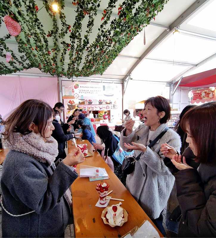 The popular strawberry festival attracted about 580,000 visitors last year. Tochigi Prefecture brought its flagship Tochiaika strawberry, aiming to increase its name recognition among consumers through food samples and selling directly to consumers. “The Yokohama Red Brick Warehouse looks great in photos, and we hope that people will talk about Tochiaika on social media,” a prefectural government official said.