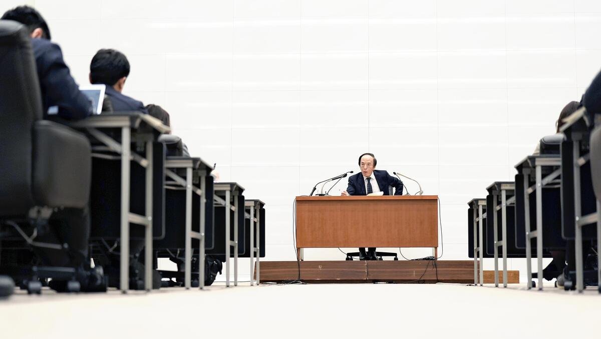 BOJ Gov. Kazuo Ueda speaks at a press conference on Friday.