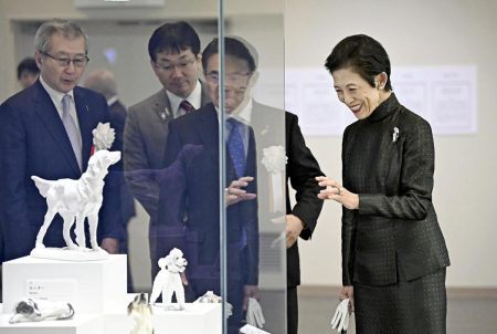 Exhibition Featuring Dog Figurines Donated by Princess Hisako of Takamado Opens in Aichi Prefecture; Princess Attends Ahead of Opening