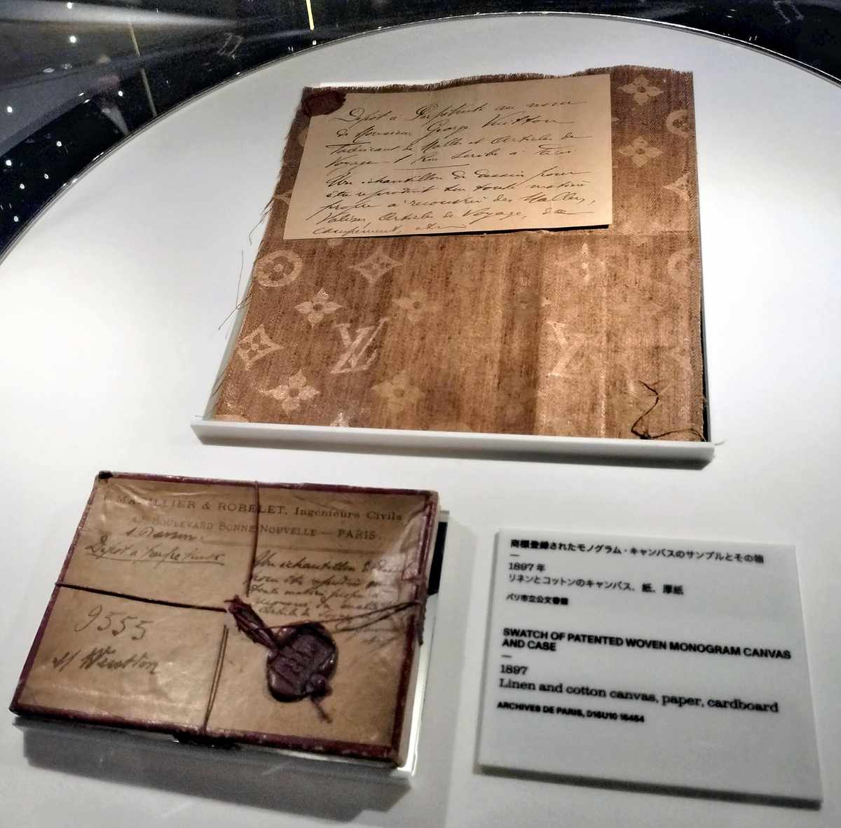 Among the exhibits is a piece of sample fabric of the Monogram canvas, trademarked in 1897, which is being shown in public for the first time ever in the world. It is a precious item of historical importance that was discovered at the Archives of Paris in 2021.