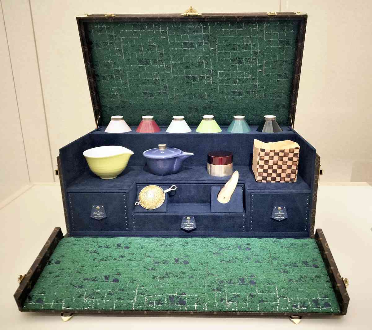 The exhibition also features a travel trunk made with traditional Nishijin fabric from Kyoto, which contains tea ceremony utensils, as well as Louis Vuitton outfits and accessories designed by the brand’s designers in the past and present, many of which were inspired by items from Japanese culture, such as samurai armor, kimono and kabuki costumes.