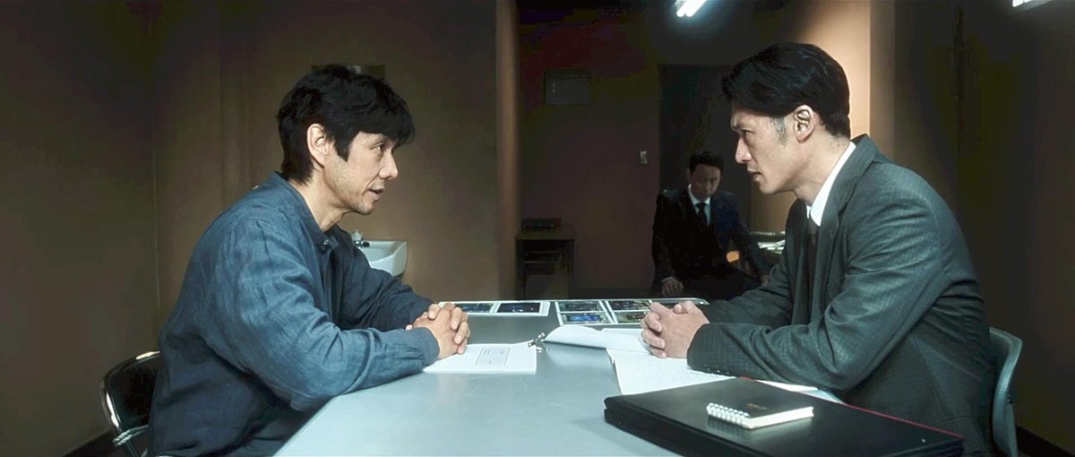 Shiro, left, is interrogated by a police detective.