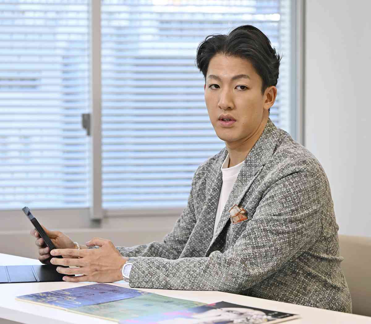 Onoe Ukon speaks during an interview in Minato Ward, Tokyo, in February.