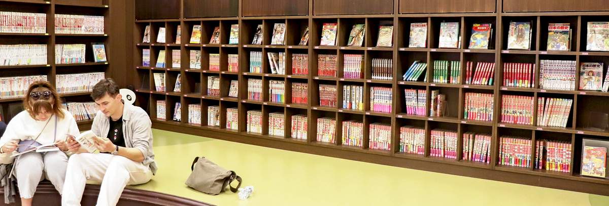 In a corner of the Kyoto International Manga Museum, two walls are lined with study manga. Here, many foreign tourists sit and read the biographies of great figures from their countries.