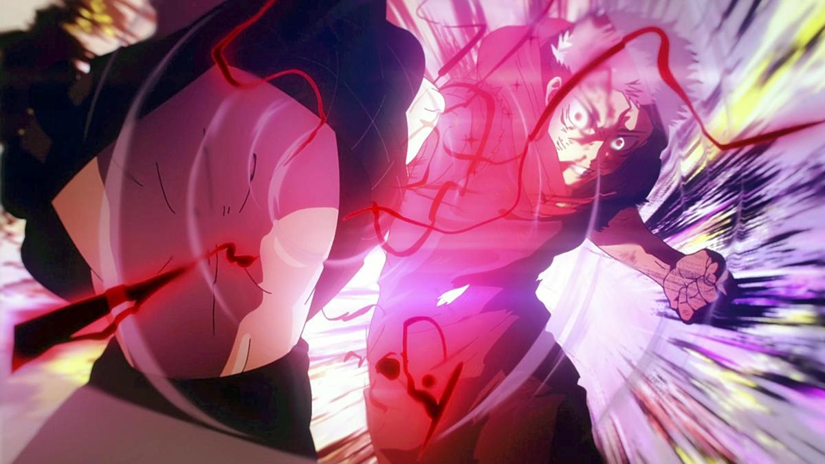 Yuta Okkotsu, top, attacks Itadori as his executioner in the third season, “The Culling Game Part 1,” which premiered this month.