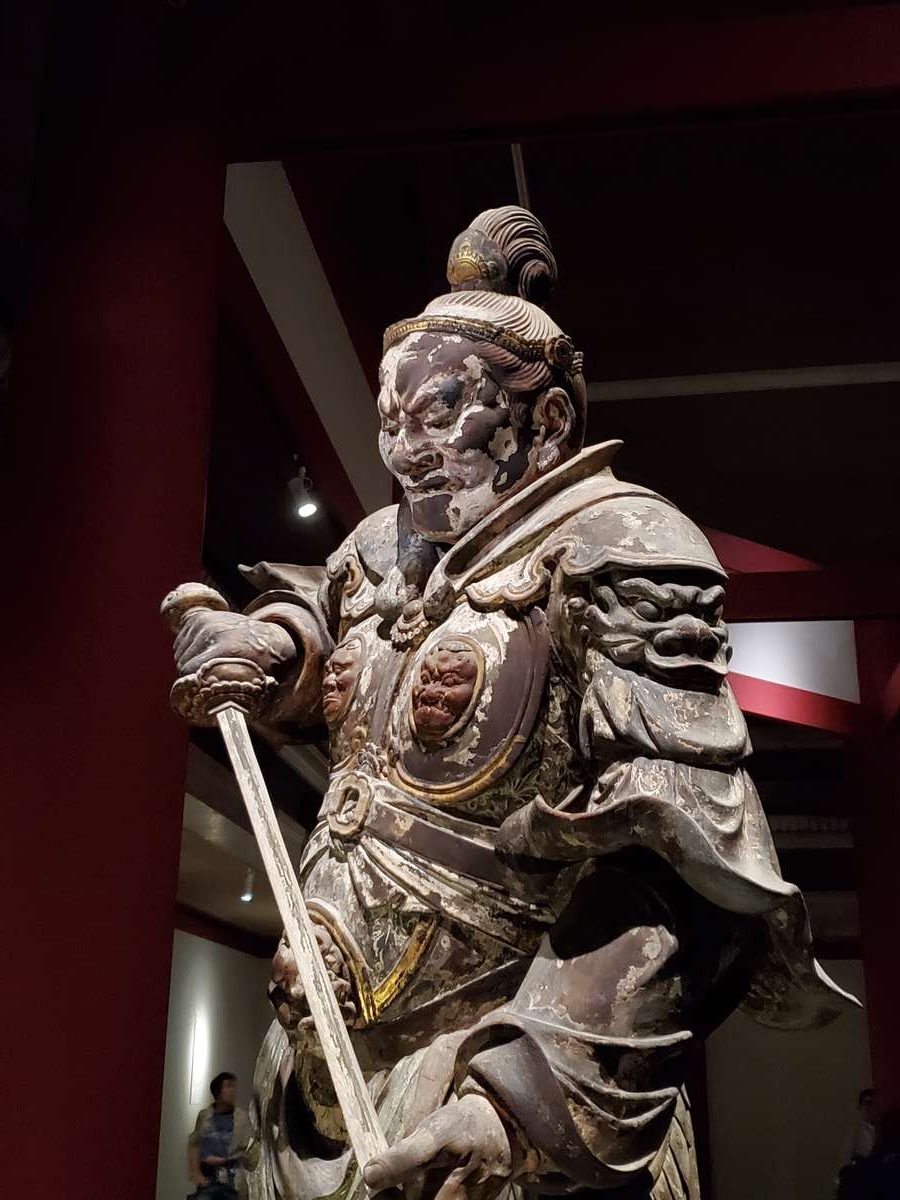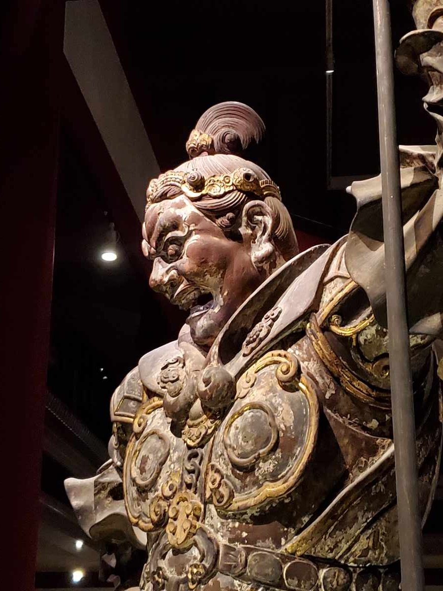The posing is also excellent, with the hand of the Standing Zochoten (Virudhaka) of the Shitenno (Four Deva Kings) statue lightly resting the blade of his sword against the side of his finger.