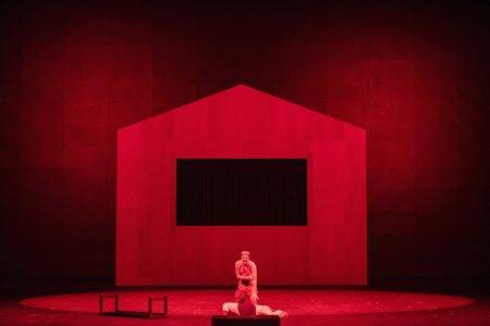 Lucy Carter’s lighting was particularly impressive in Act III, Scene III, in which the red moon rises and Wozzeck kills Marie. The entire stage and the front part of the ceiling in the auditorium were drenched in bright, ominous red. Movement director Lucy Burge provided simple yet effective choreography, a hallmark of Jones’ productions.