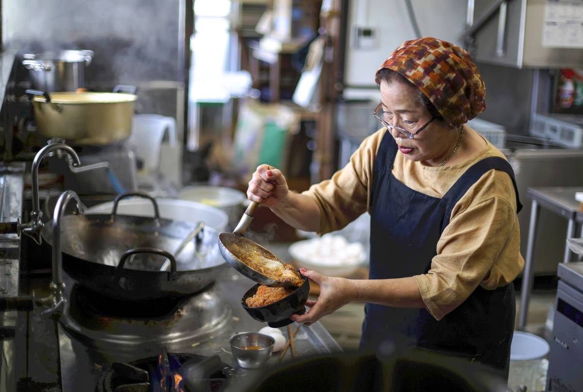 Hatsue Shojimaru prepares a katsudon bowl