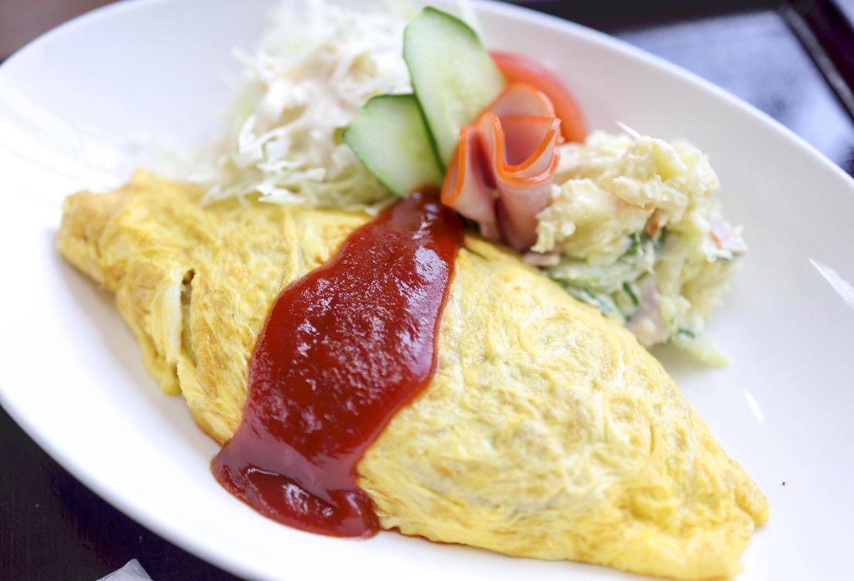 The champon noodle dish and curry rice are popular choices, but the diner recommends the “omurice,” priced at ¥1,100.
