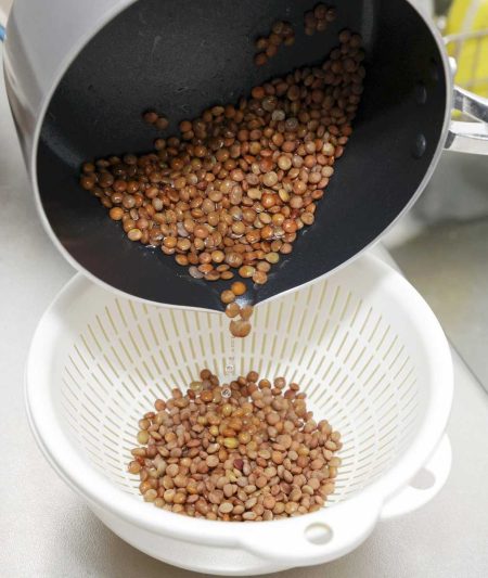 1. Rinse the lentils lightly. Boil them in water for 10-15 minutes until tender, and then drain.