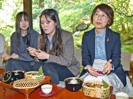 Sachiko Sato, a professor at Jissen Women’s University, right, and her students re-created a menu offered to Ino Tadataka’s surveying team.