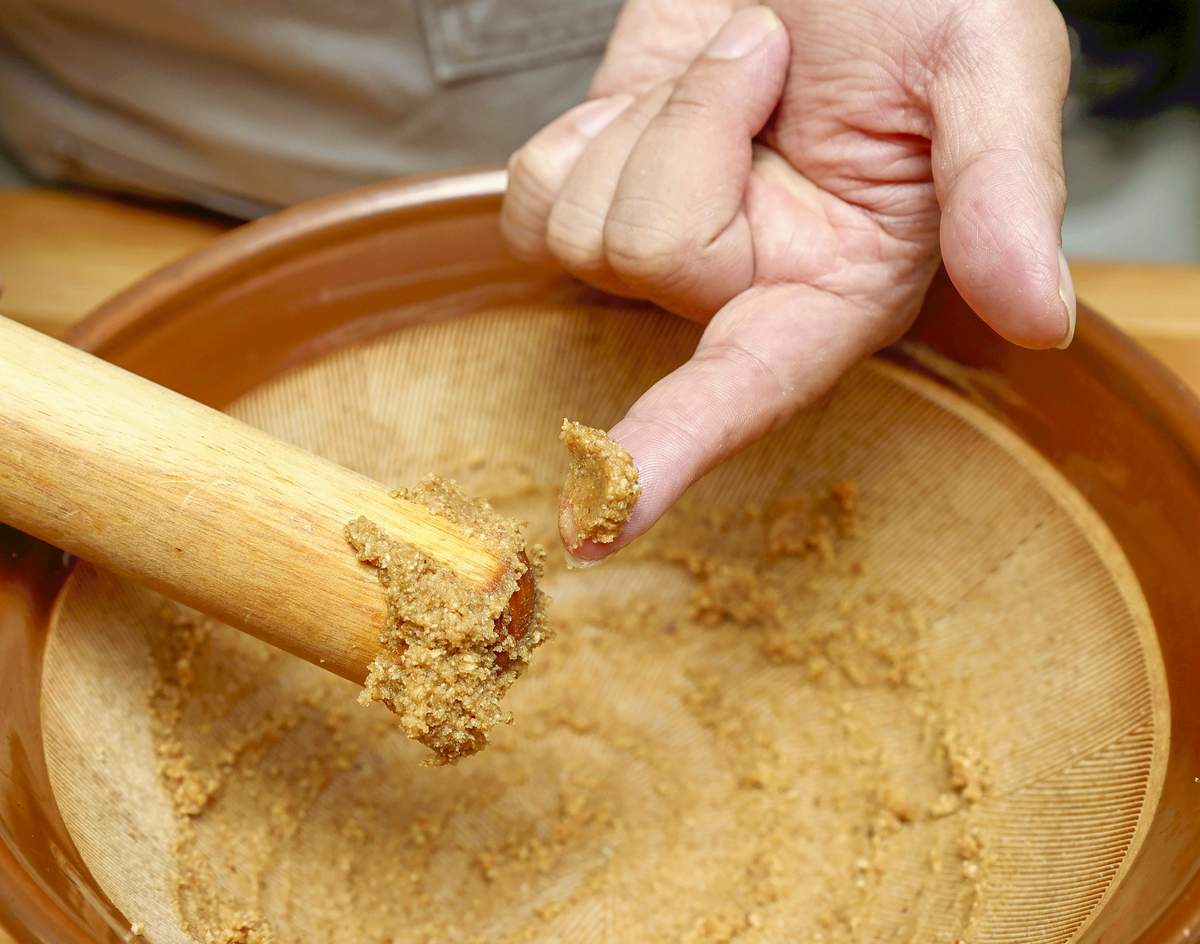 It is important to mix everything thoroughly and frequently with the pestle. This ensures that the walnut miso becomes smooth and palatable.