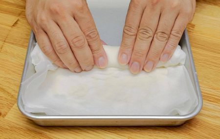 1. Line a tray with two sheets of thick paper towel, place the tofu on top and mash and spread with a fork. Cover the tofu with two more sheets of paper towel, roll the stack into a cylinder and squeeze out the moisture firmly. Leave to rest for about 3 minutes.