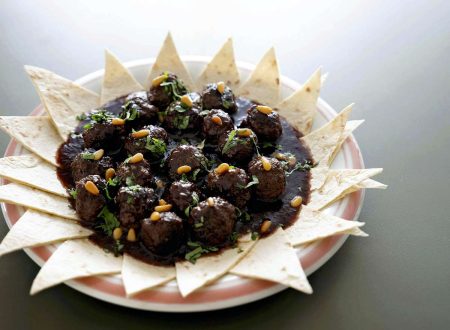 This dish features meatballs lightly simmered in a cherry sauce. It is popular in places such as Aleppo, Syria.