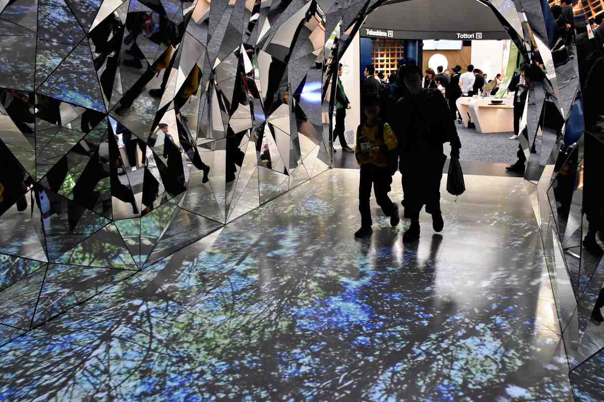 At the Mie booth, the 7.5-meter-long Tunnel of Time, which is made up of 400 mirror panels, offers visitors a fantastic visual experience of reflected light.