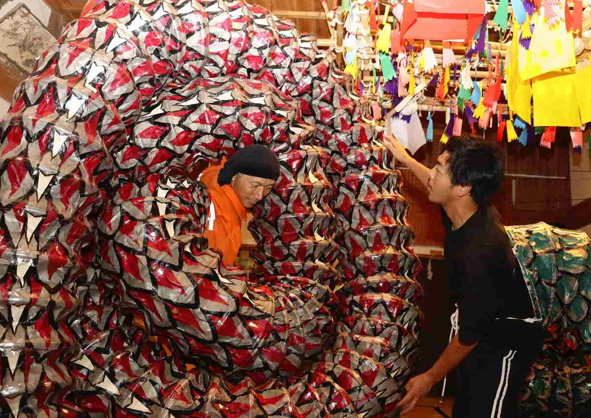 As a first-time performer of the serpent dance, Oga practiced twisting his body to wrap the serpent body around himself while letting the tail hang down. He also watched videos of joint practices to improve his dancing.