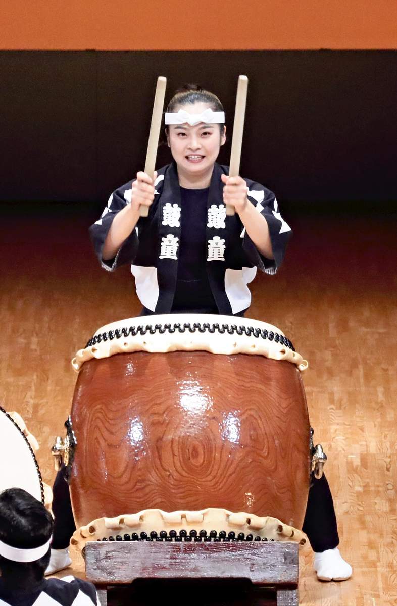 Having been recognized as a full member about a year ago, 23-year-old Ogawa showed off her elegant drumming technique in the middle of about 15 members at Oshu City Bunka Kaikan Z Hall on June 14. She and the group captivated about 900 audience members, including her family and friends, with their powerful drumbeats.