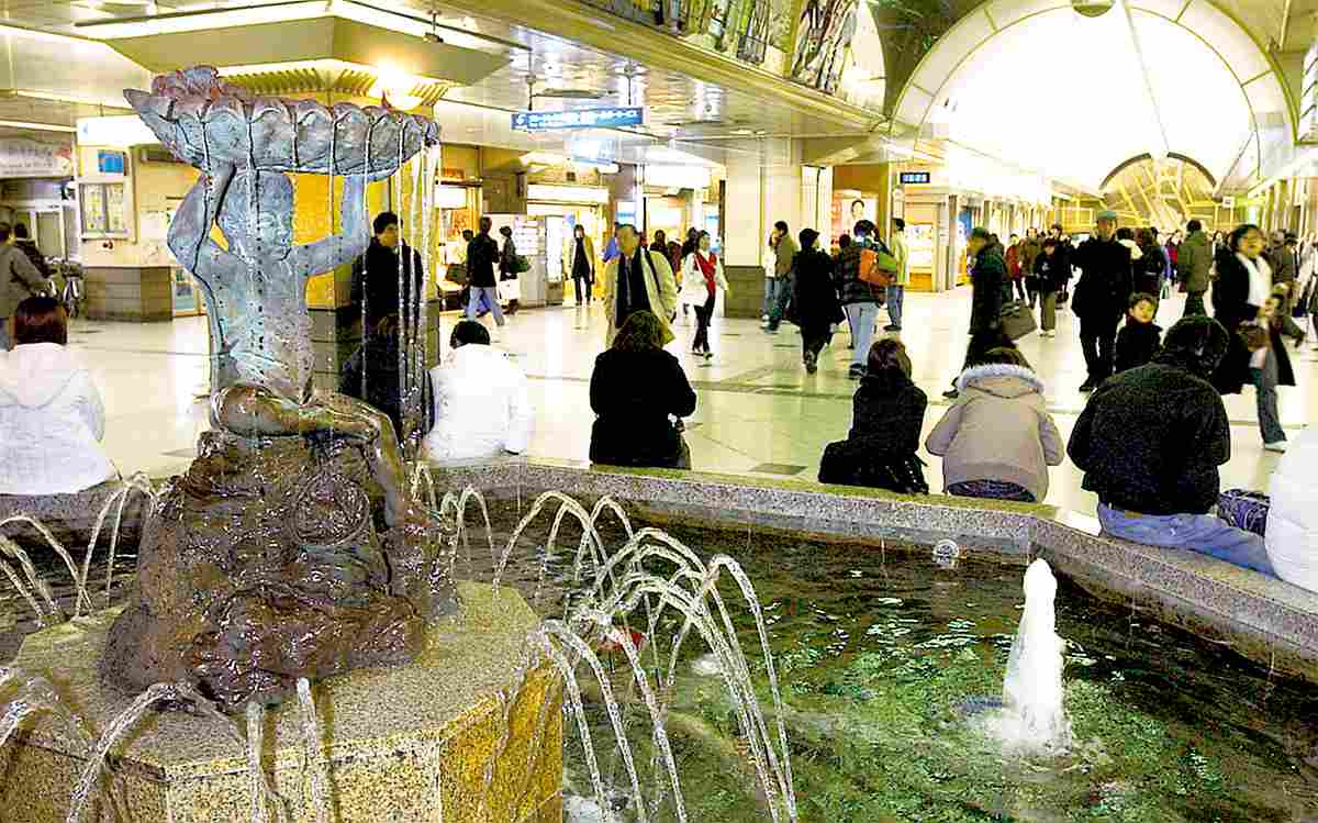 The original Fountain Boy statue, which was a popular meeting spot at JR Osaka Station, is seen in this photo taken in January 2004.