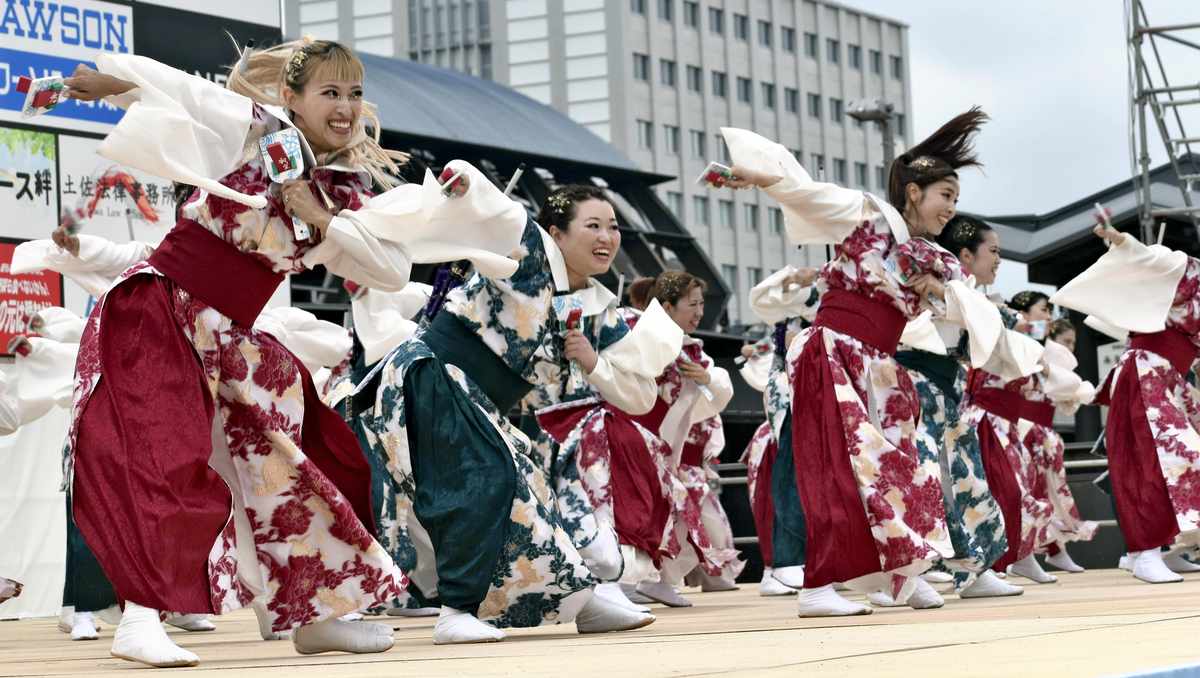 KOCHI — Gripping naruko clappers — instruments with a castanet-like sound — at Kochi’s Yosakoi Festival, dancers from Ishikawa Prefecture took a deep breath before giving their group’s long-awaited performance, having been delayed by the January 2024 Noto Peninsula Earthquake.