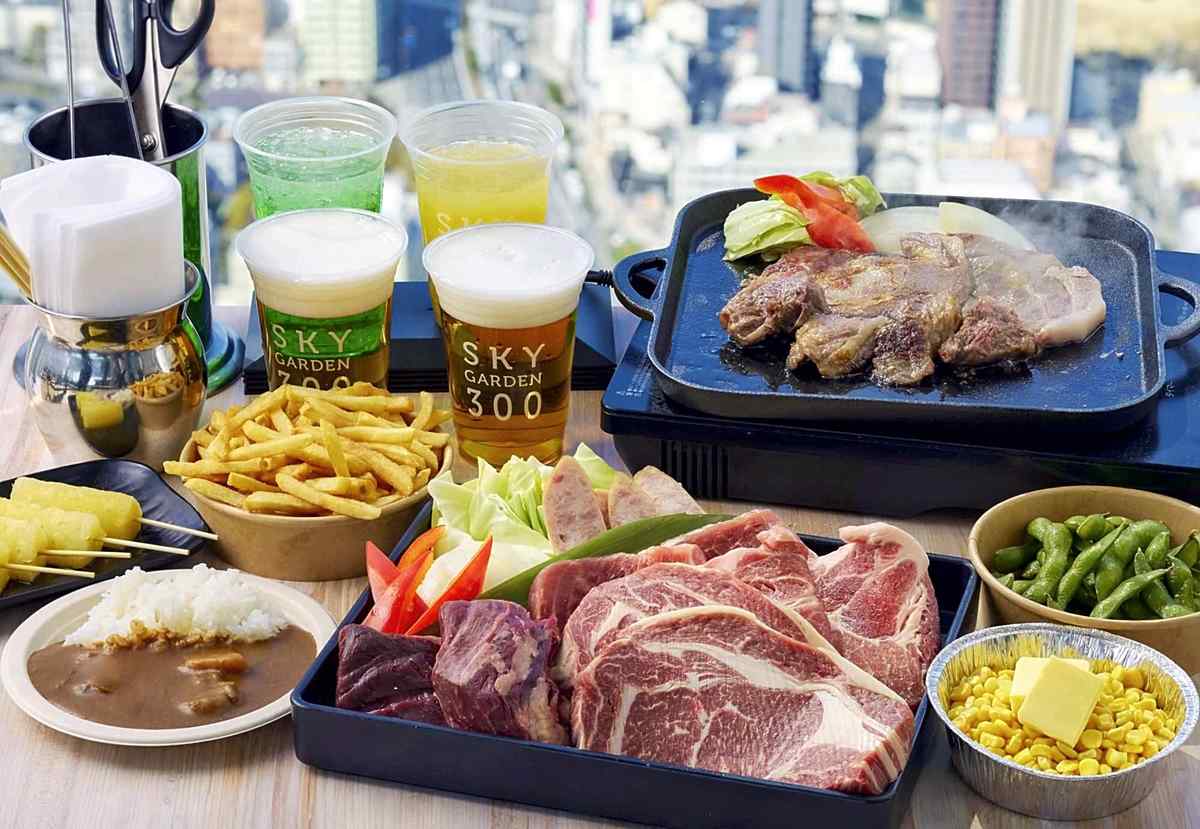 An open-air “sky garden” that offers barbecue dining through October can be found on the 58th floor of Abeno Harukas. Diners can enjoy stunning views from the 300-meter-high area.