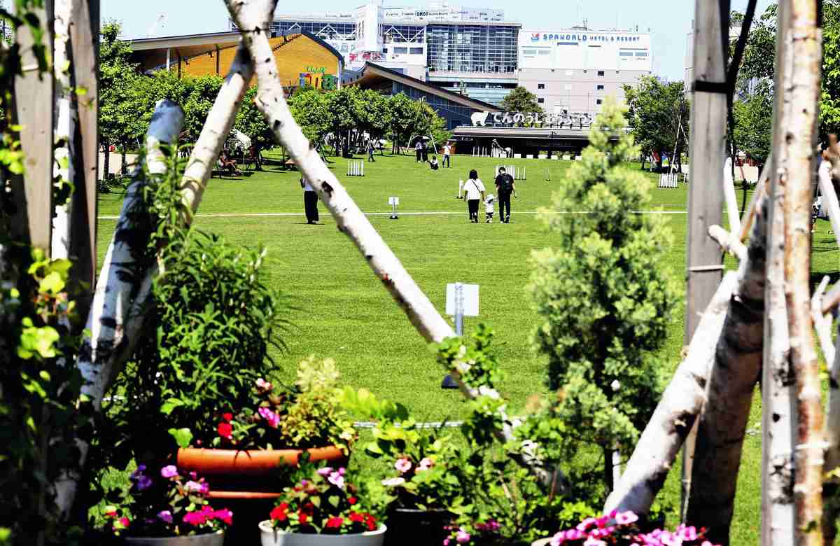 The lawn area in Ten-Shiba, which is the gateway to Tennoji Park