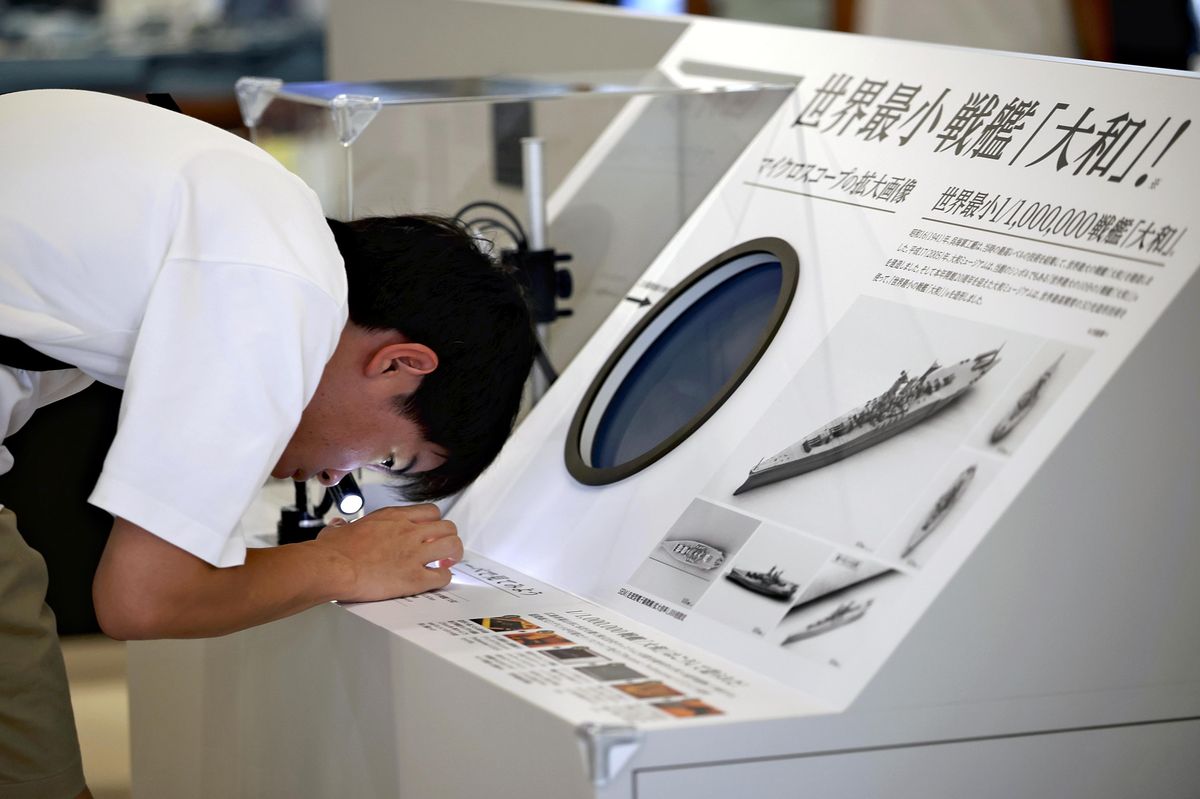 KURE, Hiroshima — A microscopic model of the World War II battleship Yamato is on display at the Yamato Museum Satellite in Kure, Hiroshima Prefecture — despite being too small to be seen with the naked eye.