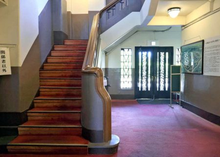 The prayer hall, built after completion of the main building, initially appears Christian-like, but inside is an Amida Buddha statue. According to Yokufukai’s 10th anniversary commemorative magazine, a bon-sho temple bell was once rung in the mornings and evenings. Read as “raihai-do,” the room’s name follows the Buddhist style. It was also used as an entertainment hall for events and performances.