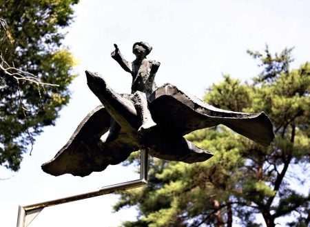 The courtyard features a sculpture from the fairytale “Nils Holgersson’s Wonderful Journey Through Sweden.”