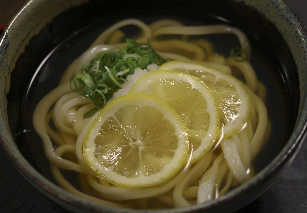 The handmade noodles have a smooth texture, yet are chewy. Lemons harvested in autumn and winter have a more sour taste, making a nice accompaniment to the warm broth. The dish is good throughout the coming season.