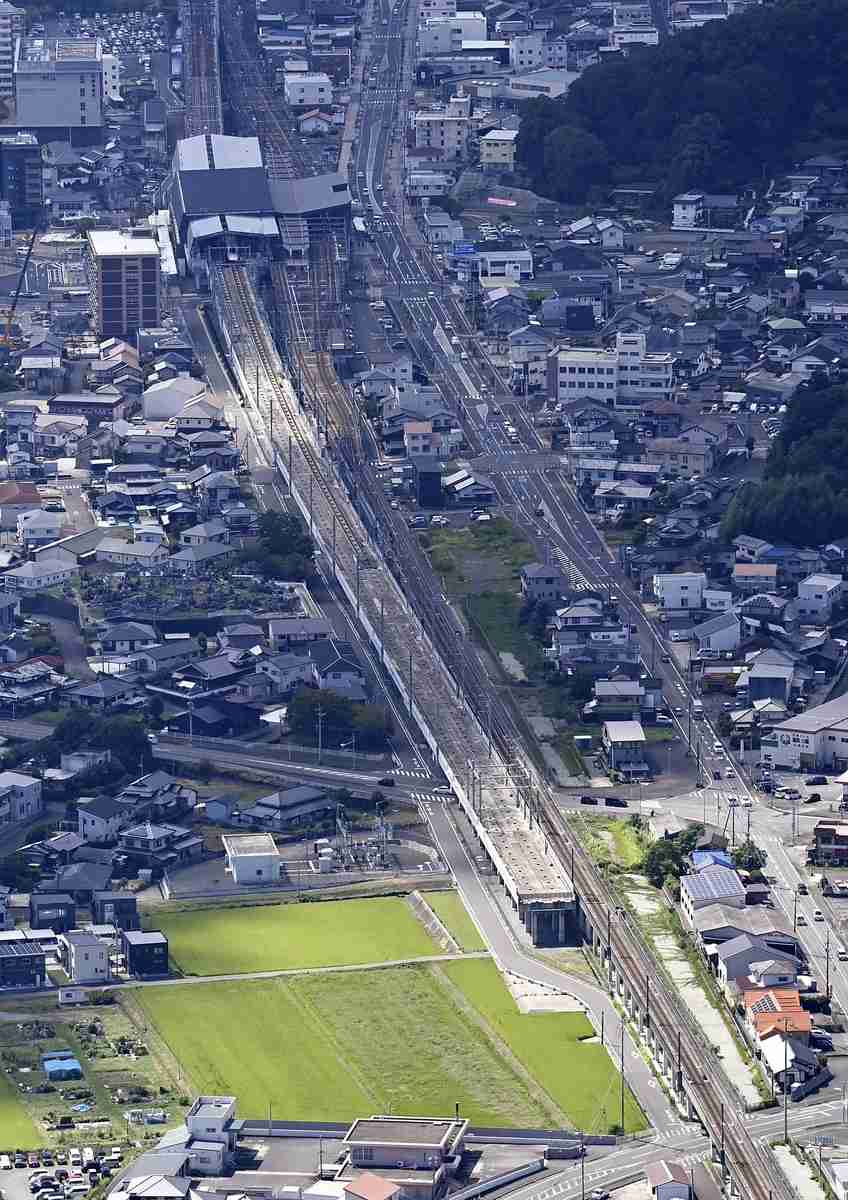 The elevated Shinkansen tracks near JR Takeo-Onsen Station, top, for trains heading to Saga Station, are still under construction on Sept. 16.