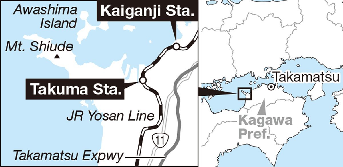 MITOYO, Kagawa — In striking illusion, a local train seems to run across the open sea less than a minute after departing from a certain station.
