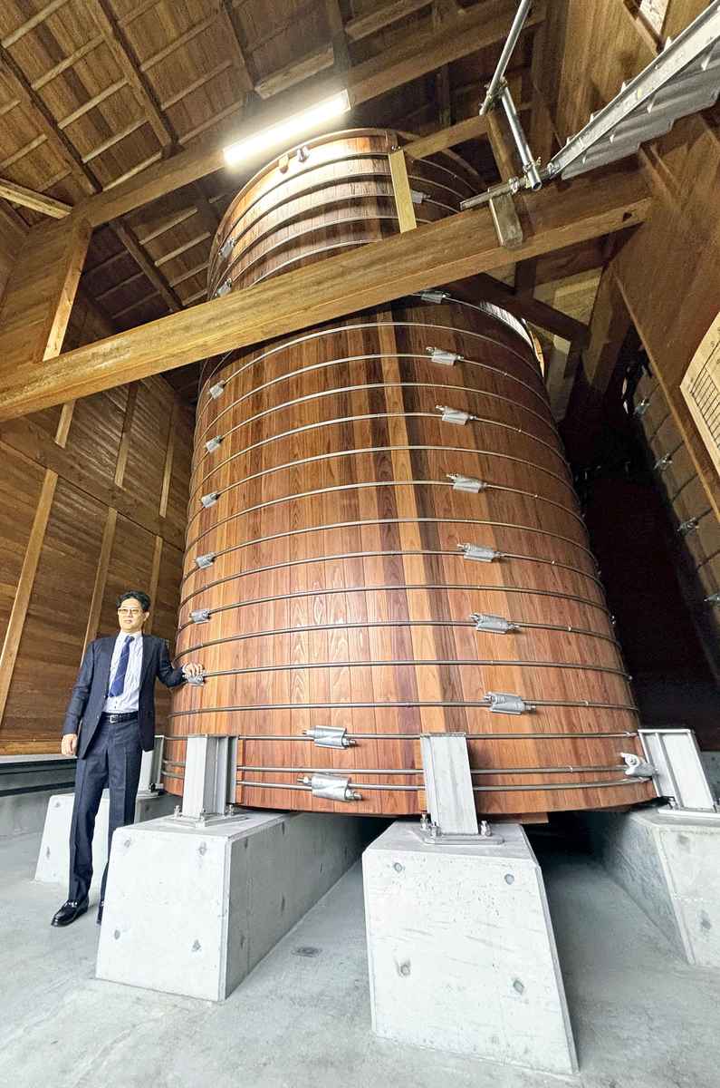 Yuasa Soy Sauce Ltd. installed two barrels, which are 5.5 meters tall with a diameter of 3.4 meters, and they are among the largest in the country. The company expects to increase production by about 4,000 liters per month.