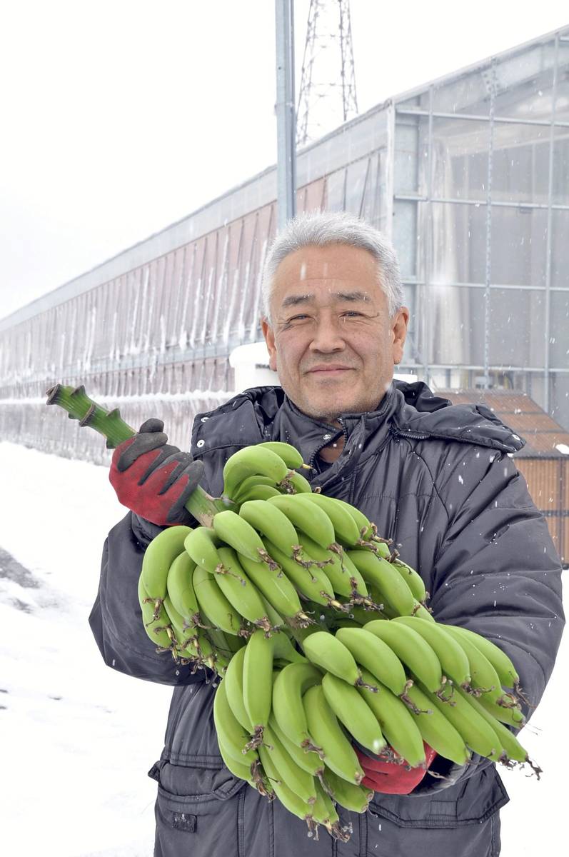 FUKUI — A farmer in snowy Fukui City ships tropical bananas year-round.