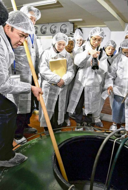KATAGAMI, Akita — To help spread the appeal of sake overseas, a sake brewery tour for international students from within Akita Prefecture was held at Kodama Brewing Co. in Katagami in the prefecture on Feb. 14.