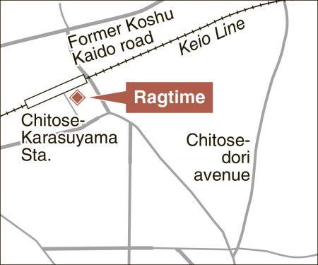 Jazz cafe Ragtime is located near the west exit of Chitose-Karasuyama Station on the Keio Line in Setagaya Ward, Tokyo. Entering a building with a small sign saying “Jazz” placed at the entrance and climbing up the narrow staircase to the third floor, you will find a photo of jazz guitarist Jim Hall beside the door to the cafe. The bouncy sounds of piano, saxophone and drums fill the dimly lit interior.